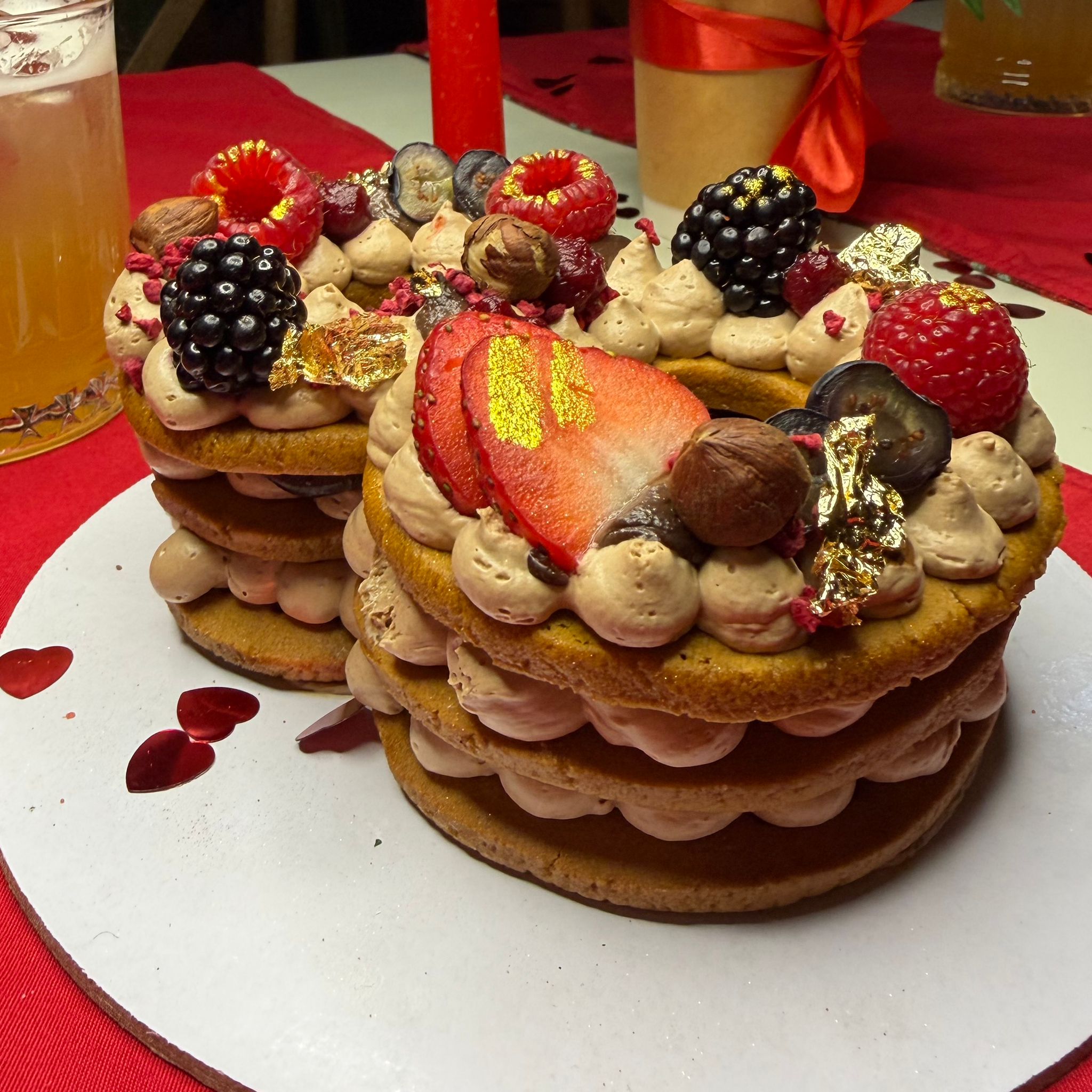 Cadou Dulce Pentru Mama ChefSuperFood este un desert artizanal creat pentru a celebra momente speciale prin gust si rafinament. Preparatul combina blatul aromat cu miere, cacao si scortisoara cu frisca fina, ciocolata cu lapte, ciocolata neagra si fructe de padure, rezultand o textura cremoasa si echilibrata.