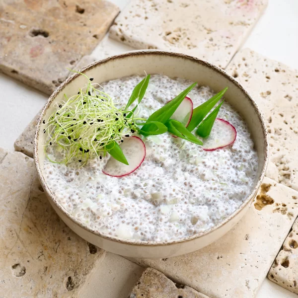 Icrele de chia ChefSuperFood sunt o alternativa vegana, artizanala, realizata manual din seminte de chia, ceapa, zeama de lamaie si smantana vegetala. Fine, cremoase si nutritive, sunt perfecte ca aperitiv sau gustare sanatoasa.