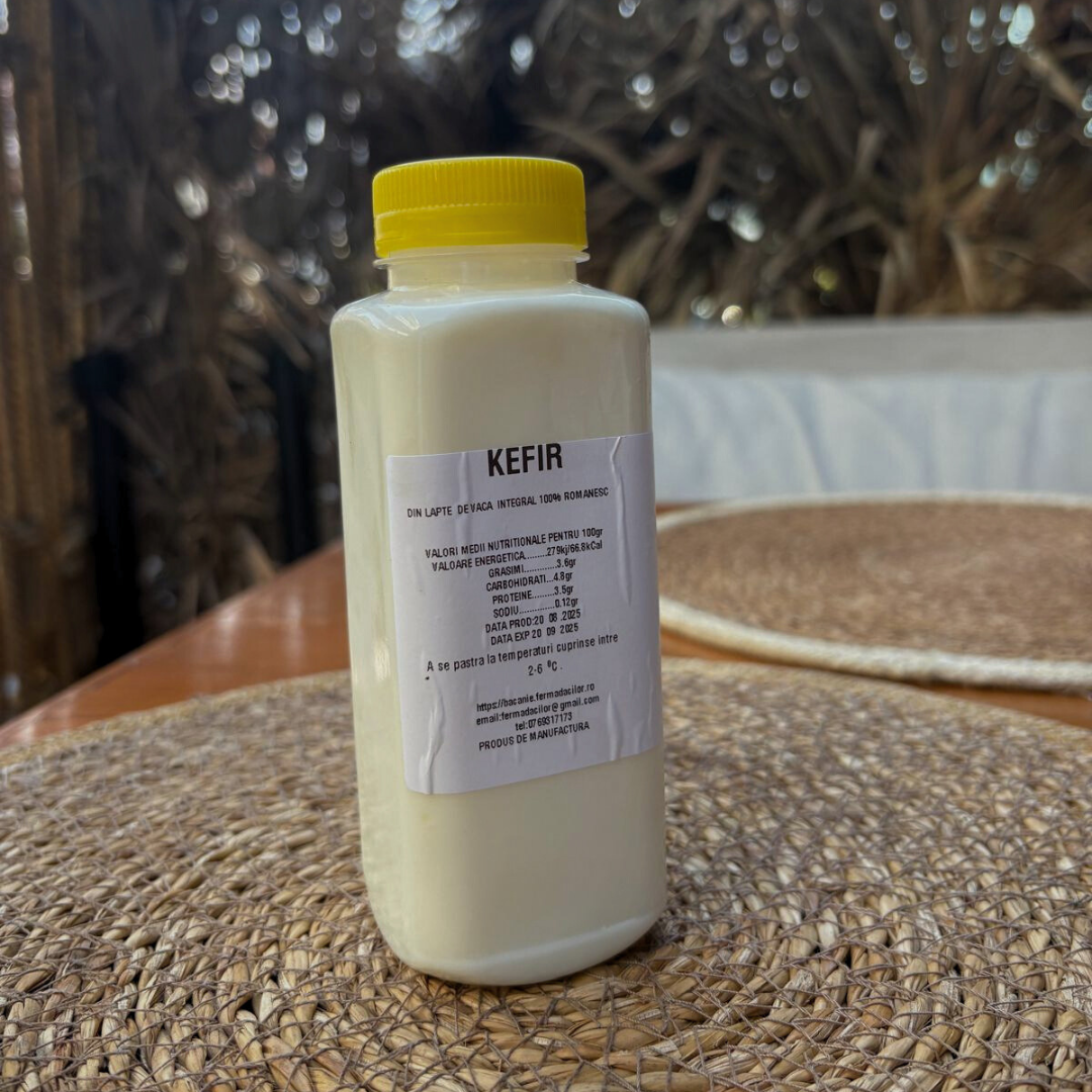 ChefSuperFood iti aduce kefirul autentic, pregatit manual din lapte integral romanesc, fermentat cu culturi specifice. Cu un gust racoritor si usor acrisor, kefirul este o bautura traditionala, apreciata pentru beneficiile sale asupra sanatatii.