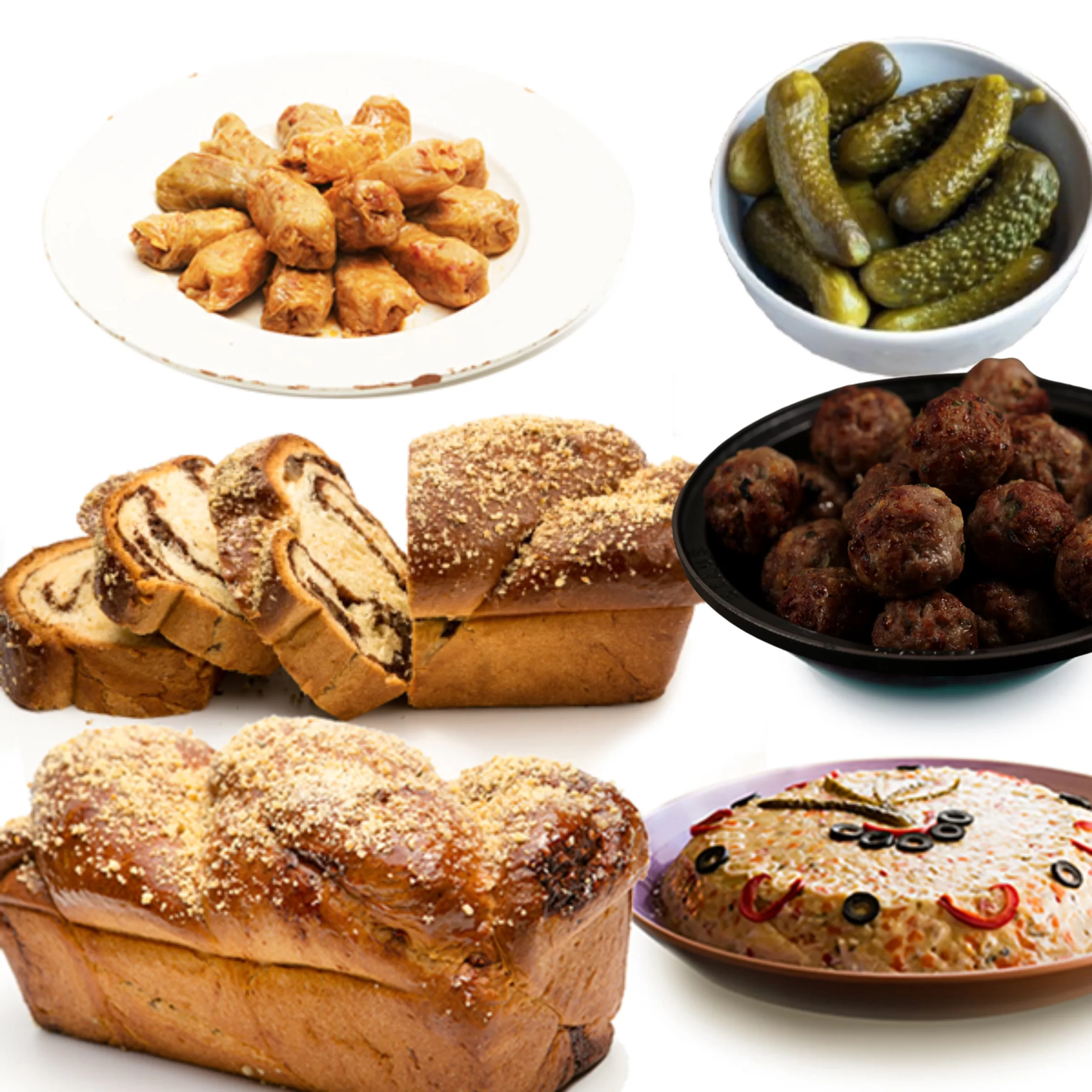 Pachetul contine: 2 cozonaci – 900 gr/buc, 27 buc sarmale, 500g chiftele de porc, 500g castraveti murati, salata boeuf de porc 1kg