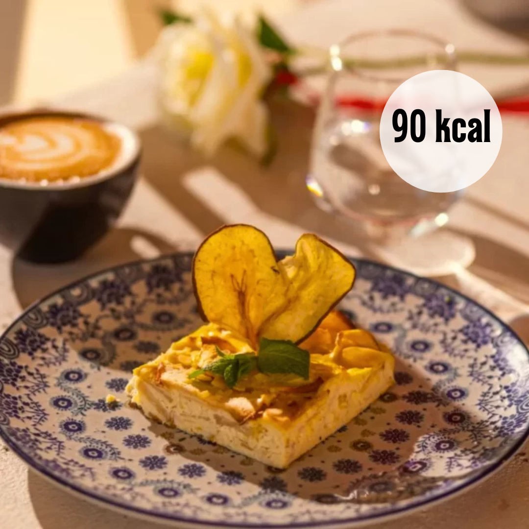 Placinta cu mere si crema de branza ChefSuperFood este un desert artizanal, preparat manual din ingrediente naturale, fara zahar adaugat. Gustul proaspat al merelor suculente se imbina perfect cu finetea cremei de branza si aroma delicata de vanilie, rezultand un desert echilibrat si savuros.