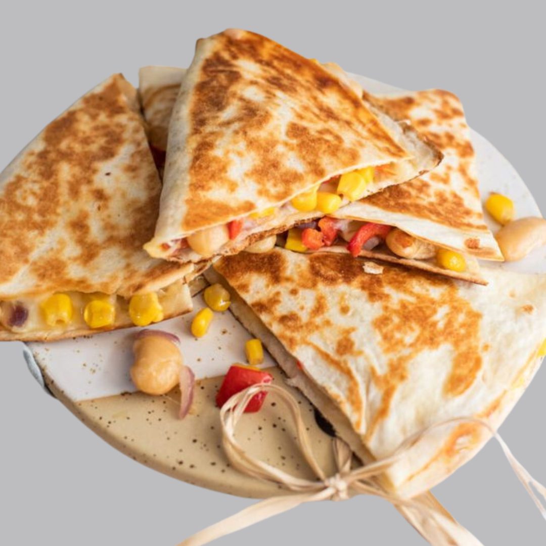 O reteta inspirata din bucataria mexicana – lipie rumenita la tigaie, umpluta cu legume sotate si branza topita. Savuroasa, usor de savurat, ideala pentru un pranz rapid.