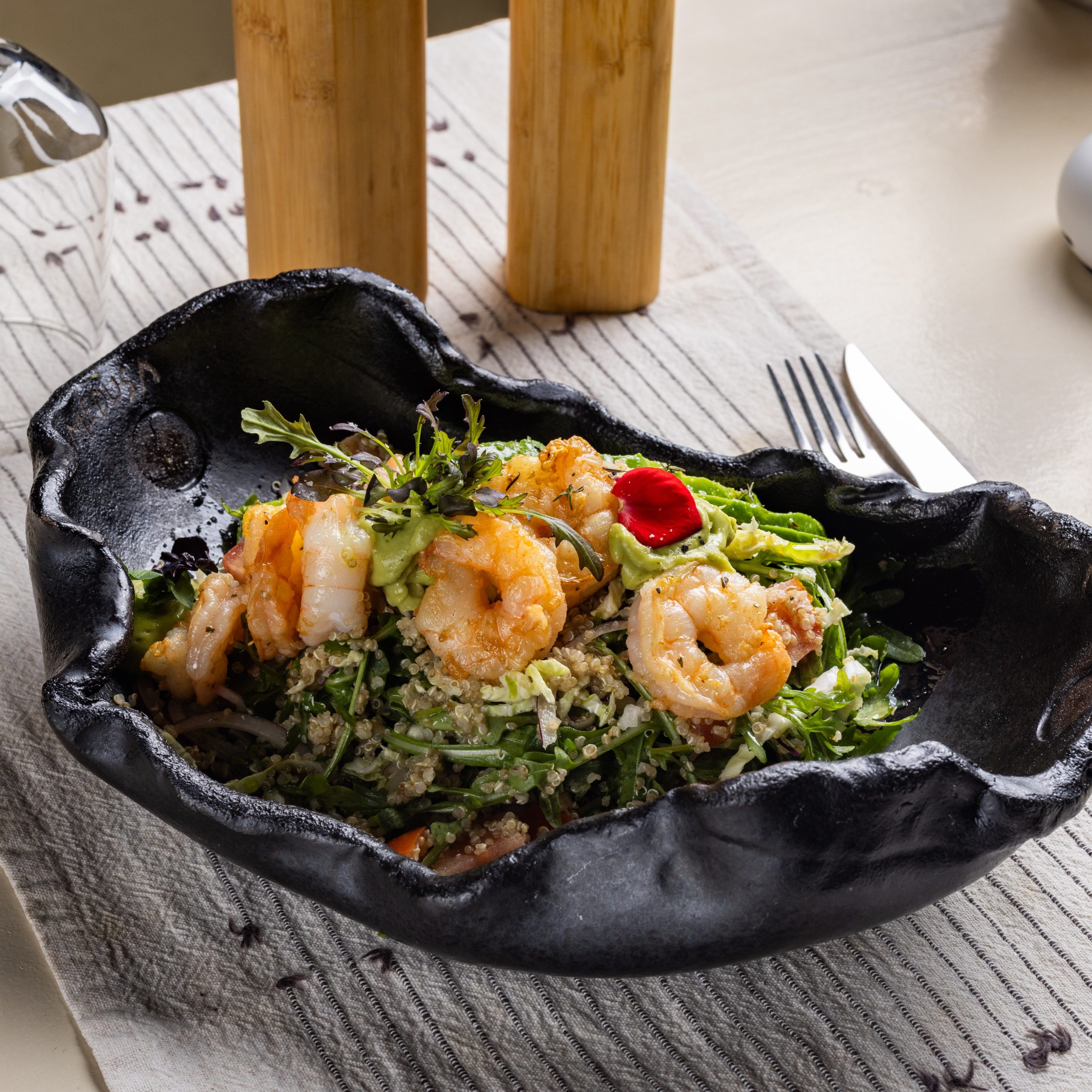 Salata iceberg si rucola ofera prospetime, avocado aduce cremozitate, iar crevetii prajiti completeaza preparatul cu o textura crocanta si un gust intens. Livrare rapida in Bucuresti si Ilfov.